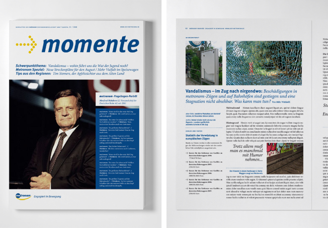 Entwurf für das Kundenmagazin »momente« des Bahnunternehmens Metronom. [Im Auftrag von FORST für Gestaltung] |