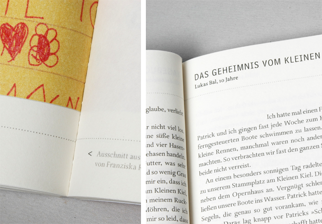 Dieses Buch entstand im Sommer 2006 für den Kieler Sommerfeld Verlag. Der Verlag hatte einen Schreibwettbewerb für Kinder und Jugendliche ausgeschrieben. Die Beiträge und Zeichnungen der Teilnehmer wurden in diesem Buch zusammen mit einem Hörbuch veröffentlicht. |